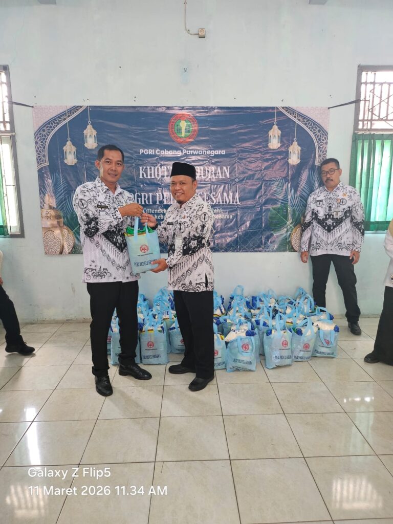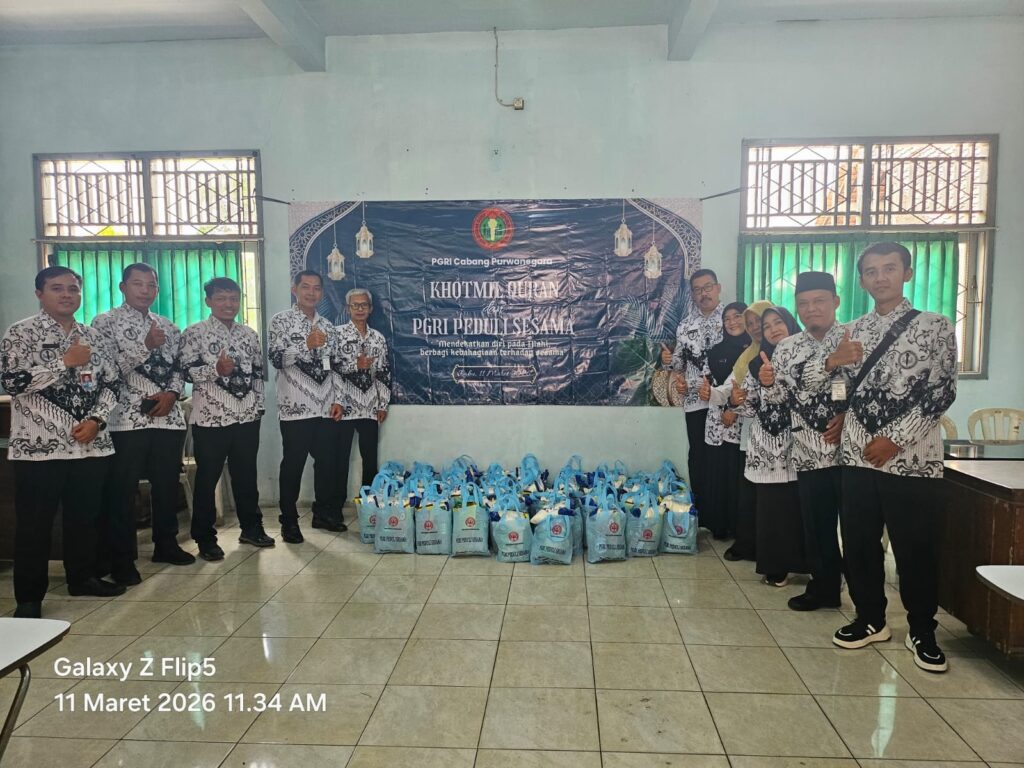 PGRIBANJARNEGARA-Pengurus Persatuan Guru Republik Indonesia (PGRI) Cabang Purwanegara menggelar kegiatan Khatmil Qur’an dan PGRI Peduli Sesama dengan tema “Mendekatkan Diri kepada Ilahi, Berbagi Kebahagiaan terhadap Sesama”, Rabu (11/03/2026).